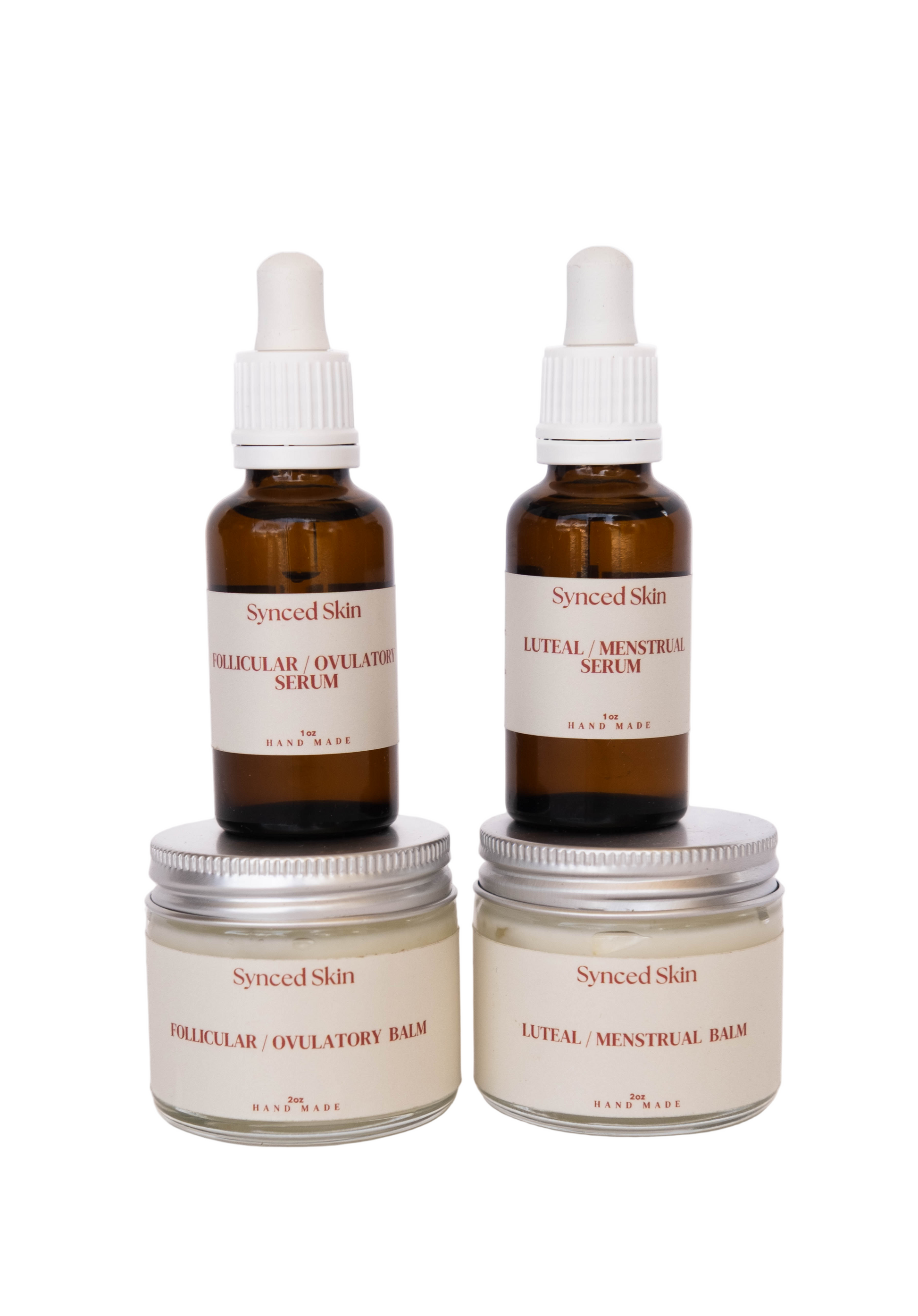 Support your skin through every phase of your cycle with the full Synced Skin ritual. This complete set includes all four of our signature products—each formulated with phase-specific botanicals to nourish, balance, and restore your skin in harmony with your body.